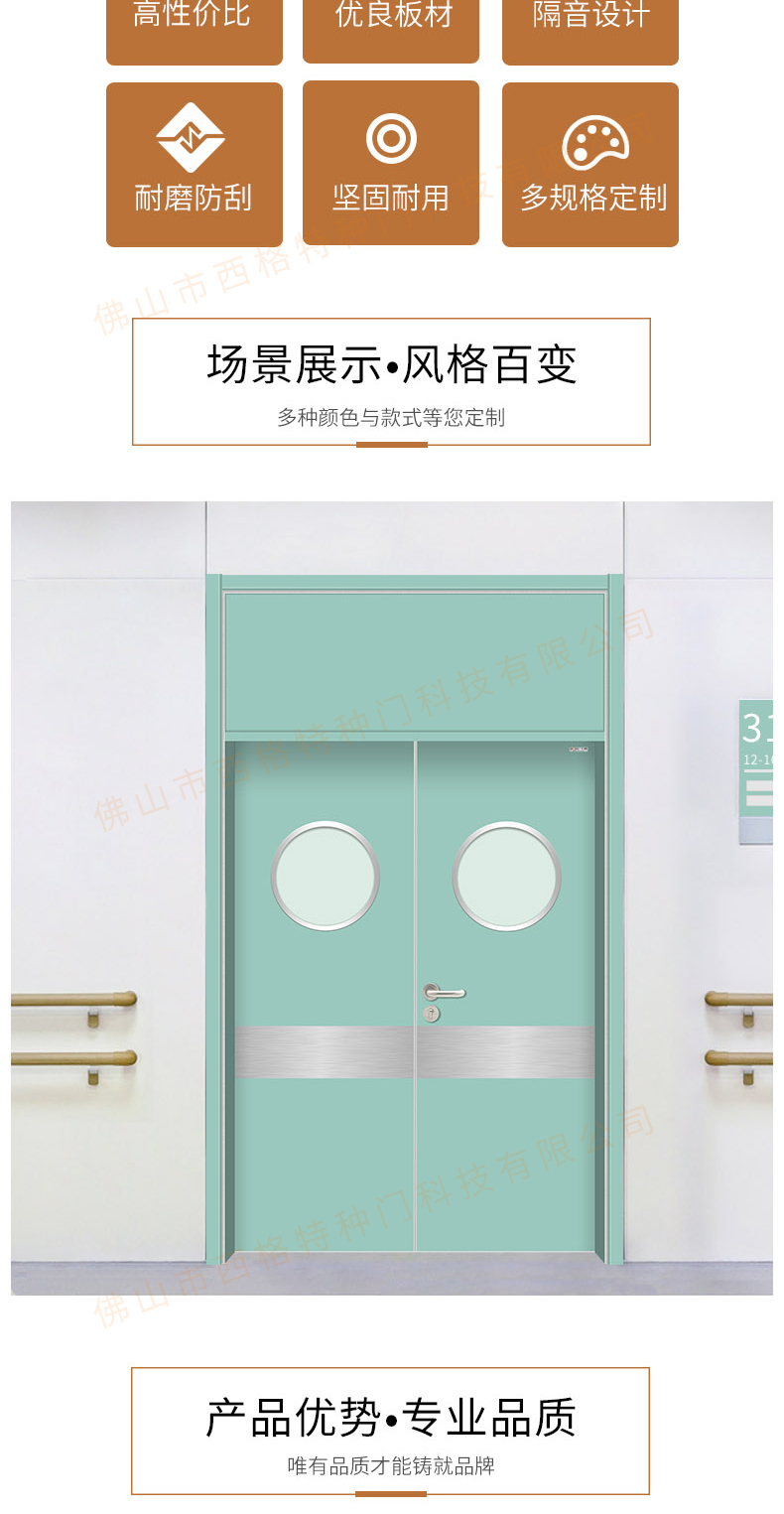 產品簡介:chnsige西格特種門,專業生產醫院門,醫院診室門,醫院辦公室門,醫院衛生間門,木質醫院門,鋼質醫院門,多鐘款式、顏色,尺寸可定制。