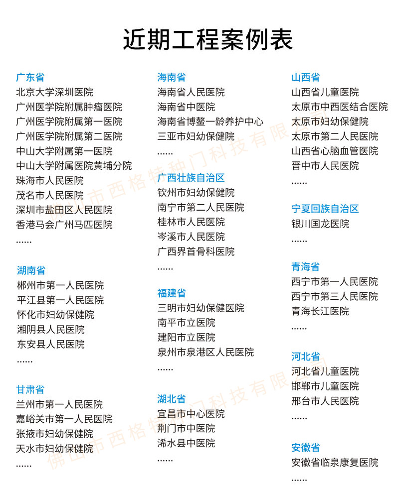 產品簡介:廣東西格醫院門生產廠家
