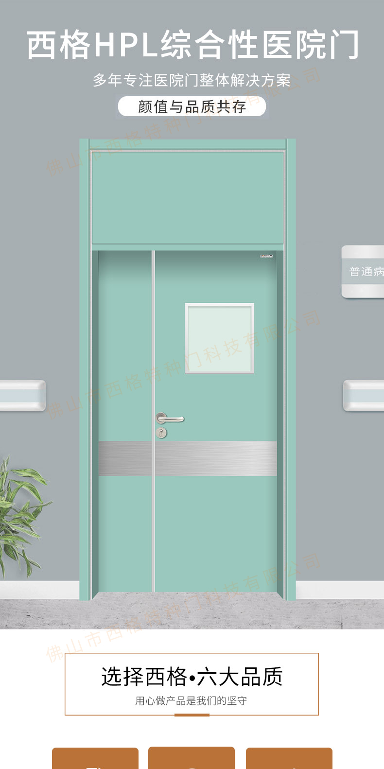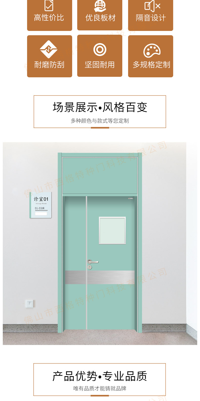 產品簡介:chnsige西格特種門,專業生產病房門,醫院病房門,醫院病房木門,病房木門,木質病房門,鋼質病房門,多鐘款式、顏色,尺寸可定制。