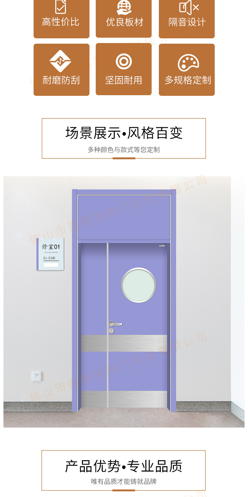 產品簡介:chnsige西格特種門,專業生產病房門,醫院病房門,醫院病房木門,病房木門,木質病房門,鋼質病房門,多鐘款式、顏色,尺寸可定制。