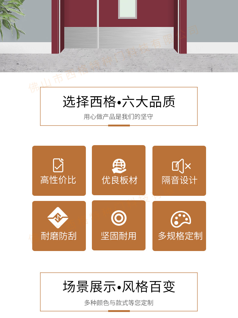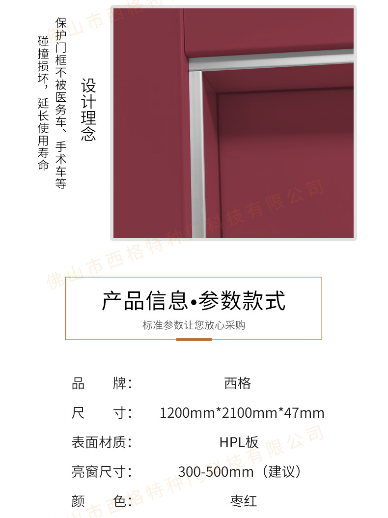 產品簡介:chnsige西格特種門,專業生產病房門,醫院病房門,醫院病房木門,病房木門,木質病房門,鋼質病房門,多鐘款式、顏色,尺寸可定制。