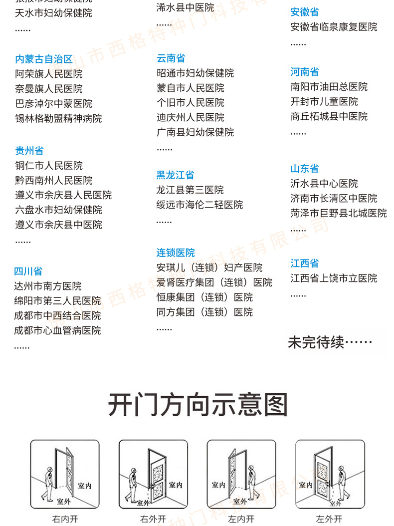 產品簡介:chnsige西格特種門,專業生產病房門,醫院病房門,醫院病房木門,病房木門,木質病房門,鋼質病房門,多鐘款式、顏色,尺寸可定制。